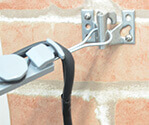 引き止め金具というものを壁にネジ止めする必要があるらしいです。