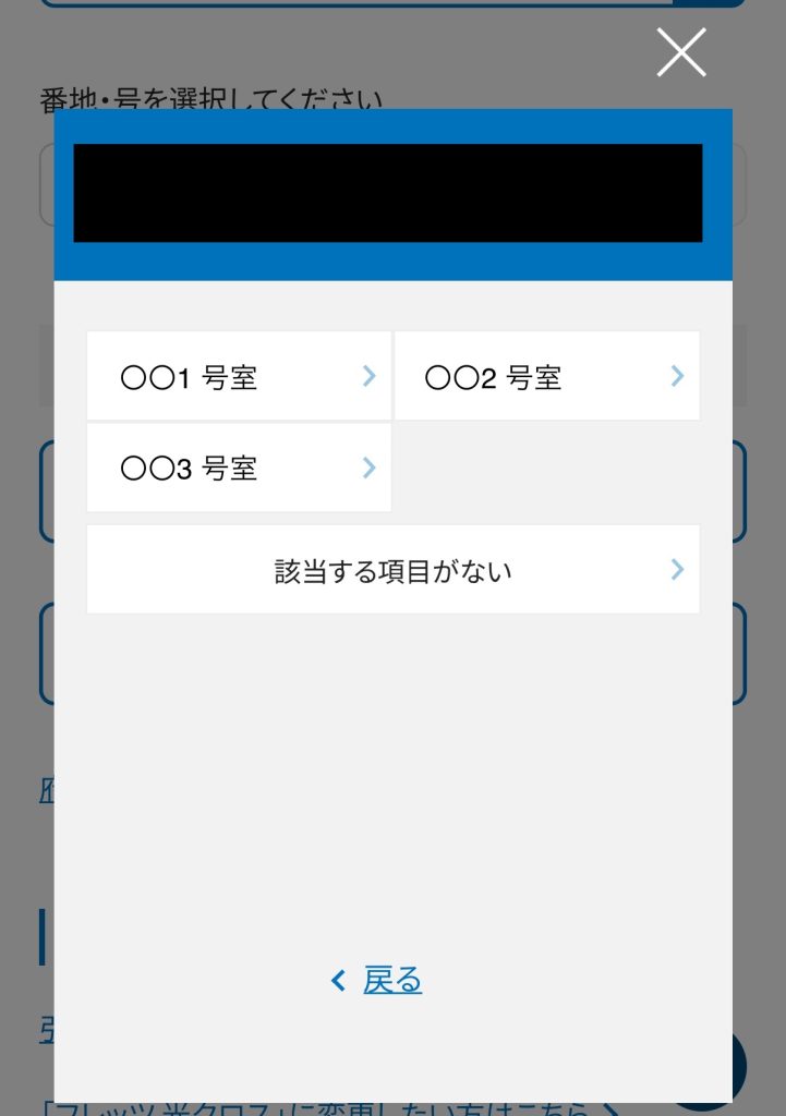 何気なくフレッツ光のエリア検索をしてみると、私の部屋番号が対応エリアに追加されていることが確認できました。