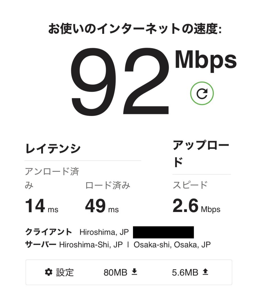 | 調子良い時 | 90 Mbps | 3 Mbps |