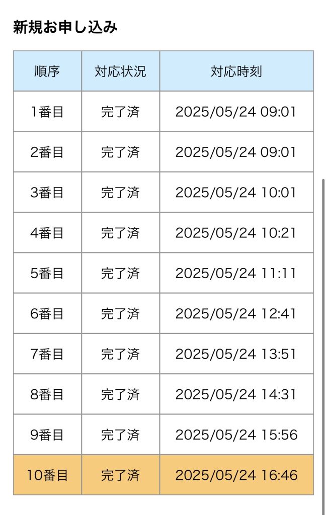 工事の前日くらいに工事状況を確認できるサイトのURLがSMSで送られてくるのですが、見てみると我が家の順番は10番目と最後でした。